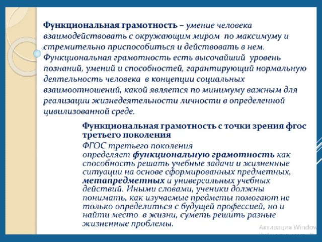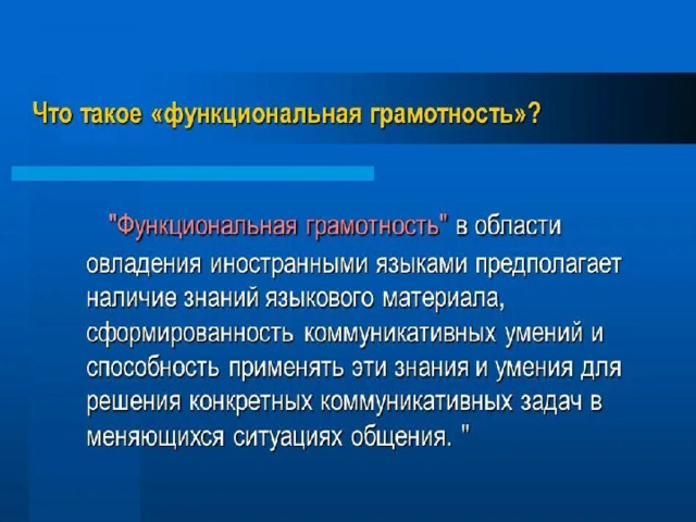«Функционально грамотный человек– это человек, который способен использовать все постоянно приобретаемые в течение жизни знания, умения и навыки для решения максимально широкого диапазона жизненных задач в различных сферах человеческой деятельности, общения и социальных отношений»