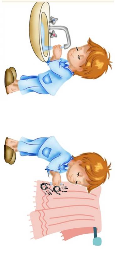 После умывания следует вытереться насухо чистым, сухим полотенцем. У каждого из вас должно быть свое полотенце.