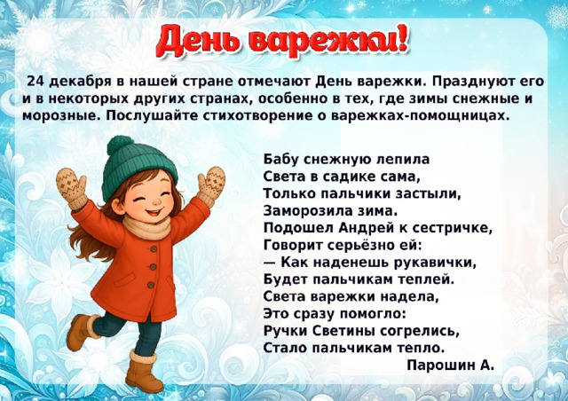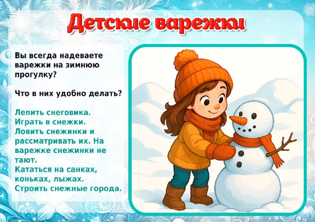 О варежках для детей можно узнать о истории, видах, материалах и творчестве на тему «Варежки»