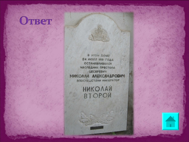 В 1891 будущий русский император посетил г.Орск. Он останавливался в доме купца Назарова. Назовите его имя?