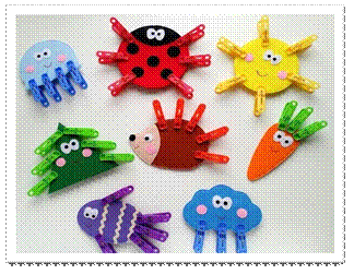 Р азвивают координацию, мелкую моторику рук. Цель: научить ребенка самостоятельно прищеплять прищепки. Чтобы игра была интересной для ребенка, можно прикреплять прищепки по тематике (то есть лучики к солнцу, иголки к ежику, дожди к тучке, травку к земле и тому подобное).