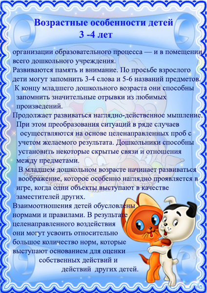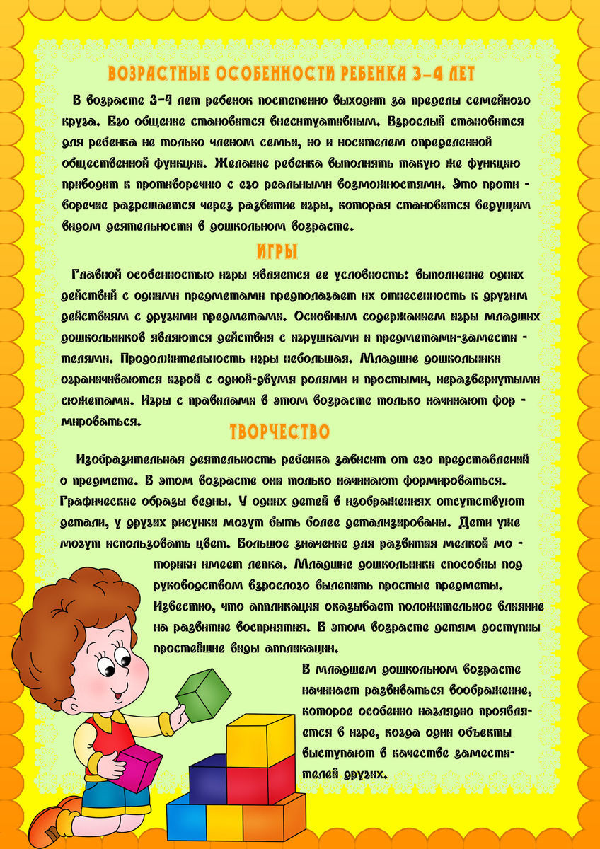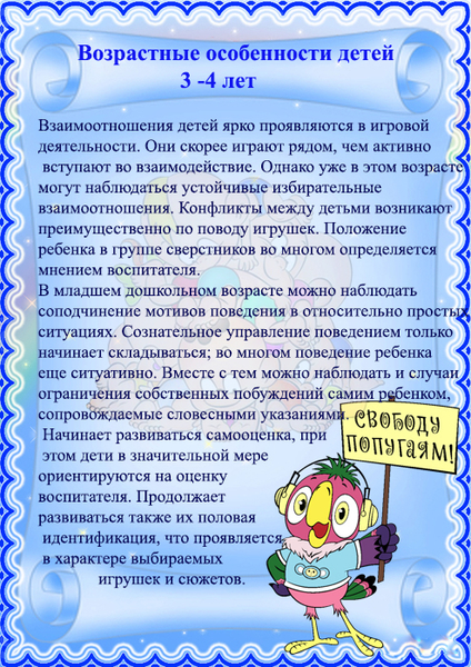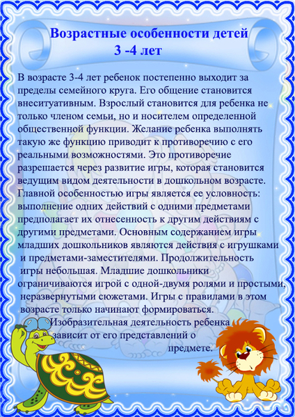 Консультация для родителей о возрастных особенностях детей 3 - 4 лет.