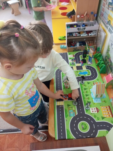 Дети играют в настольные, дидактические игры: «Дорожные знаки», «Ситуации на дорогах», «Вопрос-ответ», «Собери знак». Устраивают подвижные и сюжетно — ролевые игры: «Найди свой знак», «Сигналы светофора». Педагог обсуждает с детьми конкретные ситуаций на дороге, по наглядному и словесному материалу.