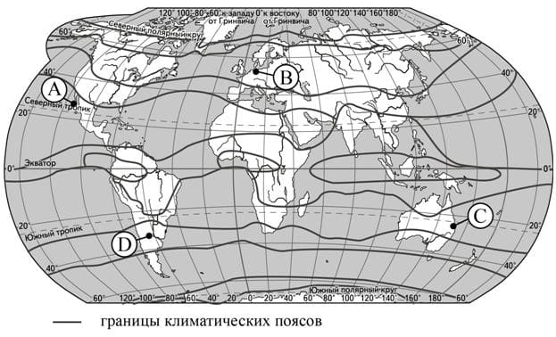 18. Проанализируйте климатограмму и определите, какой буквой на карте обозначен пункт, характеристики климата которого отражены в климатограмме.