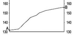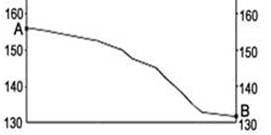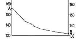 11. На рисунках представлены варианты профиля рельефа местности, построенные на основе карты по линии А – В разными учащимися. Какой из профилей построен верно?