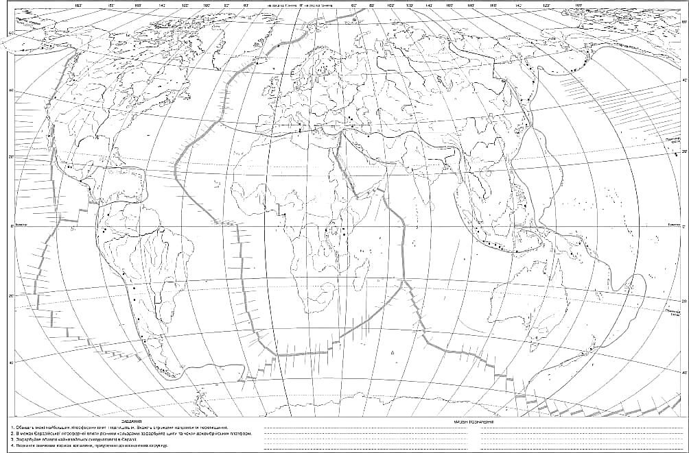 4 ) Подпишите названия 10-ти литосферных плит.