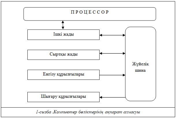 | Жаңа тақырыпты түсіндіру. Дербес компьютердің негізгі құрылғыларының өзара әрекеттесуі; Жүйелік блоктың қызметі мен құрамдас бөліктері; Микропроцессордың қызметі. Жеке жұмыс. 1-тапсырма «Суреттер сөйлейді» әдісі Дескриптор: 1. Суретке қарап өз ойларын айта алады 2. Тақырыпқа байланысты ойды табады 3. Заманауи компьютерлер туралы біледі. Бағалау: 3 балл/ Компьютер (ағылшынның computer – «есептеуші») – ақпаратты өңдеуге арналған құрылғылар жиынтығы. Компьютер ақпаратты программалардың көмегімен өңдейді. Дербес компьютер мынадай бөліктерден тұрады: ақпаратты өңдеу және сақтау құрылғысы – жүйелік блок; ақпаратты шығару құрылғысы – монитор; ақпаратты енгізу құрылғысы – пернетақта. Кейбір компонеттен көзге көрініп тұрады. Ал жүйелік блоктың ішінде орналасқан бөліктерін біз көре алмаймыз. Жүйелік блоктың ішінде орналасатын құрылғылар: аналық тақша; микропроцессор компьютердің ішкі жадысы; дискжетек- сыртқы жадының құрылғысы; жүйелік шина; компьютердің әртүрлі құрылғыларының байланысын қамтамасыз ететін электронды сызбалар; компьютердің электромехникалық бөлігі- қоректендіру блогы, желдету, қорғау жүйелері. Компьютер іске қосылып тұрған кезде оның құрамдас бөліктерінің барлығы мәліметті енгізіп, өңдеп, дайын ақпаратты ұсыну үшін бірігіп жұмыс жасайды. Барлық компьютердің жұмыс жасау негізін американдық ғалым Джон фон Нейман былай деп тұжырымдайды: Екілік кодтау принципі. Бұл принцип бойынша ЭЕМ ондык жүйеде емес екілік жүйеде жұмыс істеуі қажет; Жадының бір тектілік принципі. Бұл принципке сәйкес деректер мен бағдарламалар бір жадыда сақталады; Бағдарламалык басқару принципі. ЭЕМ-дегі барлык есептеу бағдарлама түрінде берілуі қажет. Қазіргі заманғы дербес компьютерлер ашық архитектураға ие. Бұл дегеніміз, компьютердің ескірген бөліктерін оңай ауыстыруға болады. Компьютер архитектурасы дегеніміз құрылғылардың құрамы, олардың өзара әрекет ету принциптері, сондай-ақ олардың функциялары мен сипаттамалары. Компьютер құрамына жад құрылғылары, процессор, енгізу/шығару құрылғылары кіреді. Компьютер жұмысының алгоритмі 1. Жадқа енгізу құрылғысының көмегімен бағдарлама енгізіледі. 2. Команда жадыдан оқылады және процессор орындайды. 3. Содан кейін екінші команда, үшінші және т. б. Командалар орындалады. 4. Бағдарламаны орындау нәтижелері компьютердің сыртқы құрылғысына шығарылады. 2-тапсырма. «Үштік» әдісі (Ойлан, жұптас, бөліс) -Компьютердің құрамдас бөліктері мен олардың атқаратын қызметін білу не себепті маңызды? Дескриптор: -компьютер құрамдас бөліктерді атайды; -олардың атқаратын қызметінің маңыздылығын түсіндіреді. ҚБ: / 4 балл/ 3-тапсырма. «Зерттеушілік конференциясы» әдісі -Қалай ойлайсыңдар, болашақта компьютердің қандай құрылғылары қолданыстан шығуы мүмкін? Дескриптор: -қолданыстан шығатын құрылғыларды атайды; -өз пікірлерін түсіндіреді. ҚБ: /3 балл/ |