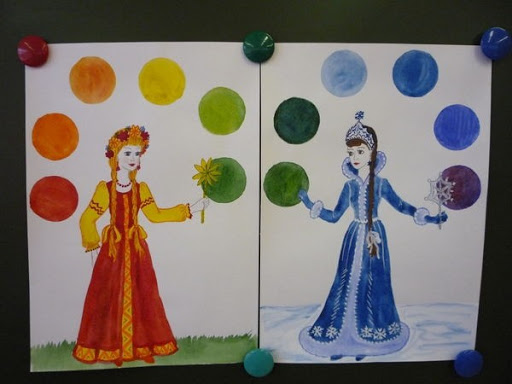 | | | Проверка готовности к уроку. Проверка школьных принадлежностей Скажи, скажи, художник, Какого цвета дождик, Какого цвета ветер, Скажи, какого цвета вечер? Скажи, какого цвета Зима, весна и лето? Ромашку сделай белой, Гвоздику сделай красной, Лилию- оранжевой, Желтым одуванчик. И мы увидим тоже: Какого цвета дождик, Какого цвета ветер, Какого цвета вечер, Поймем какого цвета Огромная планета! Прослушав это стихотворение подумайте и скажите о чем мы с вами будем сегодня на уроке разговаривать? О цвете. Что такое цвет, какова его природа? Что представляет собой окраска предметов? Почему одни предметы синие, другие красные, а третьи зеленые? Оказывается, всему причиной является солнце, вернее, его световые лучи, которые озаряют все на своем пути. В темноте мы не видим никаких цветов. Когда в глаз попадают лучи солнечного или электрического света - световые волны, у нас возникает ощущение цвета. Мы живем в мире, где царит цвет: цветные люди, цветные пейзажи, цветные животные, цветные дома, цветные машины. Представьте … что, однажды, вы просыпаетесь… и всё вокруг… черно-белое… Или все зеленое, или все голубое, или все красное?! Согласитесь, мир перестанет быть таким интересным… Как изменится наше настроение..? Какие чувства мы будем испытывать..? Цвет – одно из самых выразительных средств в искусстве. Цвет - одно из самых выразительных средств в искусстве. Он сильно влияет на чувства, состояние, настроение людей. Восприятие цвета человеком сложилось естественно, в условиях окружающей природы, и при всех индивидуальных особенностях есть научно обоснованные общие закономерности восприятия цветов. Например, красный цвет - это символ Солнца, огня, крови, жизни. Он обычно связывается с радостью, красотой, добром, теплом; но он же означает тревогу, опасность, тревогу для жизни. Белый цвет чаще всего символизирует свежесть, чистоту, молодость; но может означать покой, безжизненность и даже траур у некоторых народов. Черный цвет с точки зрения физики - пустота, отсутствие света и цвета; его традиционный смысл - все «ночное», недоброе, враждебное человеку, горе и смерть. Цветоведение – наука о цвете. Ребята, видим ли мы в темноте цвета? Нет. Нет. Только когда в глаза попадают лучи солнечного или электрического света световые волны, у нас возникает ощущение цвета. Свет- это частный случай электромагнитного излучения. Свет распространяется волнами, которые отражаются или поглощаются поверхностью предметов. Световые волны не имеют цвета, цвет возникает только при восприятии этих волн человеческим глазом. Короткие волны дают ощущение красных и желтых цветов, а более длинные – синих и фиолетовых. Все спектральные цвета плюс недостающие в солнечном спектре пурпурные (промежуточные между крайними красными и фиолетовым) составляют так называемую хроматическую («цветную») шкалу цветов. Белые предметы отражают весь спектр, а черные, наоборот, весь спектр поглощают. Если взять белую и черную краски и смешать их в разных пропорциях, получится большой ряд серых тонов, от чисто-белого до черного. Это будет другая шкала цветов — ахроматическая («бесцветная»). Ахроматические цвета отличаются друг от друга только по одному признаку - по светлоте (светло-серый или темно-серый). Хроматические цвета, кроме отличия по светлоте, характеризуются еще двумя главными при
