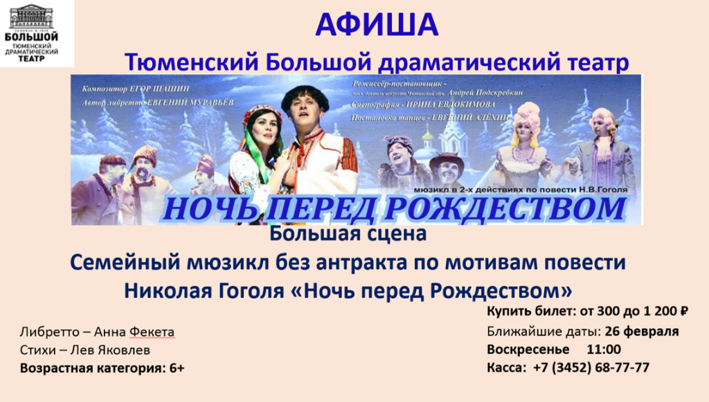 2) Назовите дату и начало спектакля
