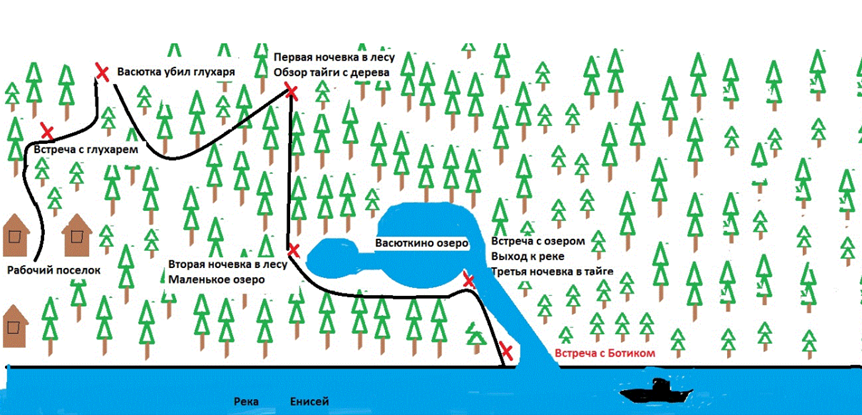 IV. Рассмотрите карту. Верно ли она отражает путь Васютки в тайге.
