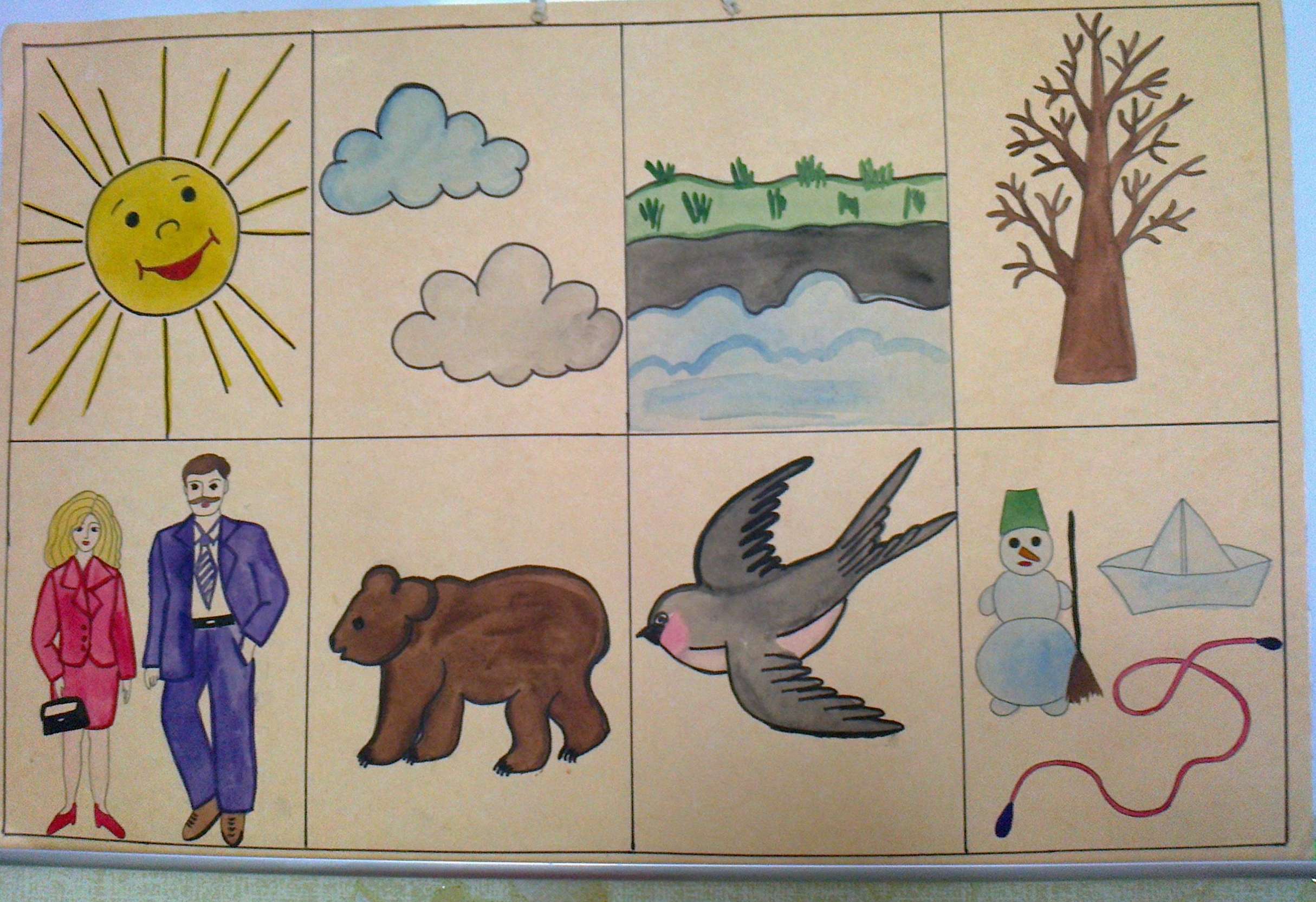 Оборудование: наборное полотно; предметные картинки: кленовые, дубовые, березовые листья и др.; фишки, схема.