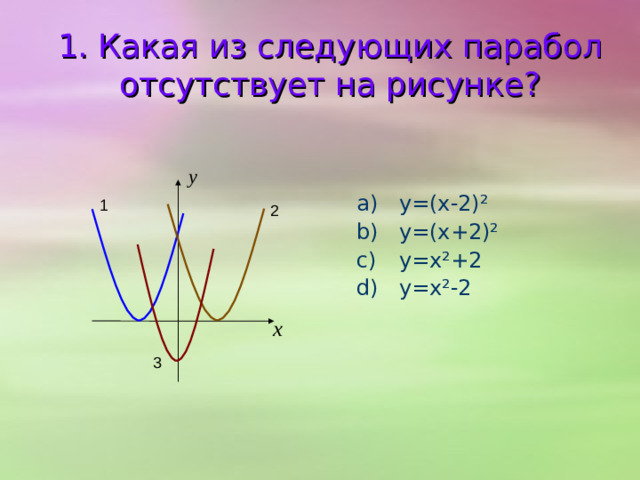 2. Каждый график соотнесите с соответствующей ему формулой:
