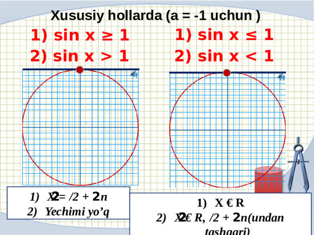 Politexnikumlarning 1-kurs o`quvchilari uchun Trigonometrik tengsizliklar