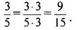 Мы круг раздел или на 5 равных частей и закрасили 3 такие части, затем каждую пятую часть круга мы разделили еще на 3 равные части. Тогда весь круг оказался разделенным на 5 · 3 = 15 частей, а в трех пятых круга будет 3 · 3 = 9 таких частей, поэтому