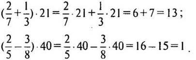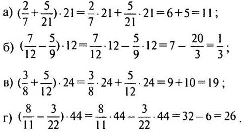 Цели урока: повторить распределительное свойство умножения относительно сложения и вычитания; способствовать формированию и развитию логического мышления, умению формулировать и обосновывать суждения; воспитывать аккуратность, точность и внимательность при работе с дробями.