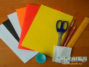 двухсторонняя цветная бумага желтого, оранжевого, красного цветов;