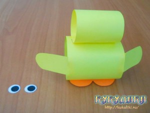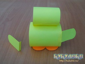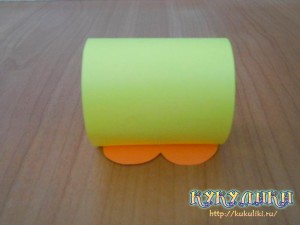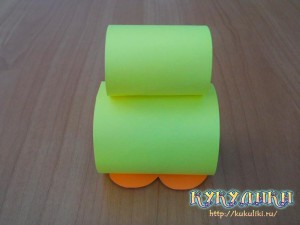 На оранжевую заготовку (лапы) приклеиваем большой цилиндр.