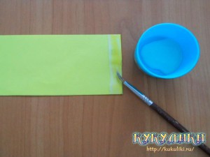 Намазываем клеем одну короткую сторону большого прямоугольника.