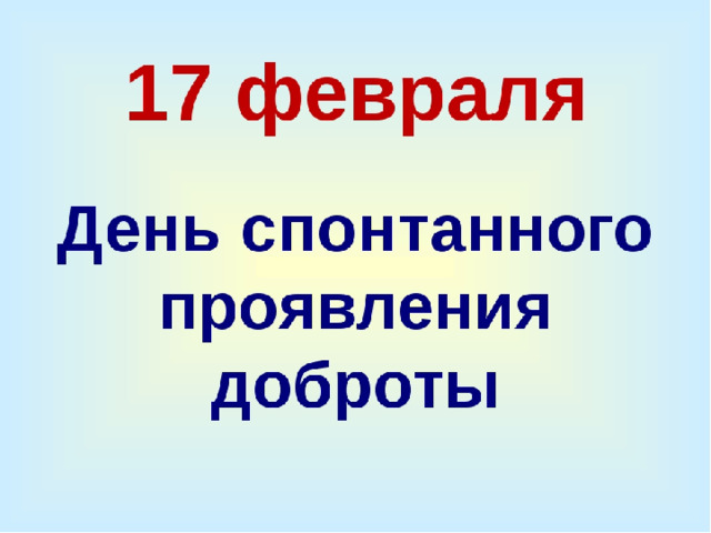 Презентация к мероприятию «День спонтанного проявления доброты» (17 февраля) для начальной школы представляет собой набор слайдов, раскрывающих суть праздника и вдохновляющих детей на добрые поступки. Она включает определение доброты, историю праздника, примеры простых добрых дел, пословицы о доброте и интерактивные элементы (например, игру «Вежливые слова»), чтобы в доступной форме показать младшим школьникам, как легко и важно проявлять заботу об окружающих.