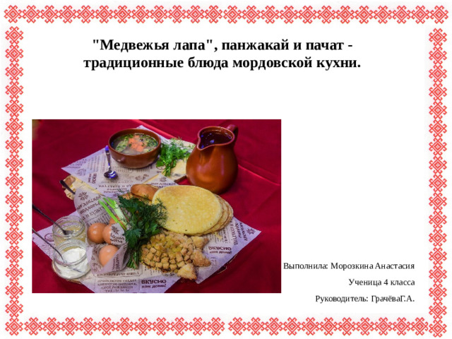 "Медвежья лапа", панжакай и пачат - традиционные блюда мордовской кухни.