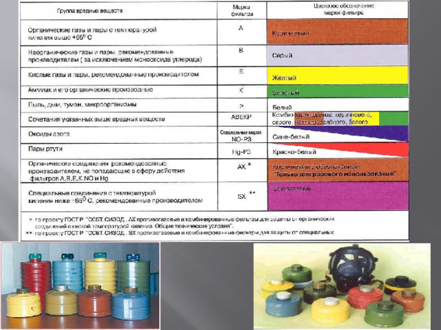 Обеспечение защиты от ОВ, РП, БС, радионуклидов йода и его органических соединений, АХОВ (фтористого и хлористого водорода, нитрила акриловой кислоты, аммиака, сернистого ангидрида, фосгена, хлора, сероводорода, сероуглерода, формальдегида, хлорпикрина).