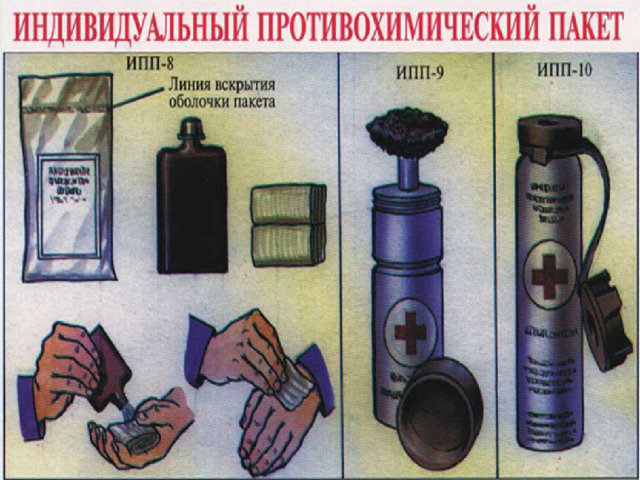 в) средства профилактики и экстренной помощи ( индивидуальные аптечки Юнита, индивидуальный противохимический пакет ИПХП, индивидуальный перевязочный пакет ИПП)